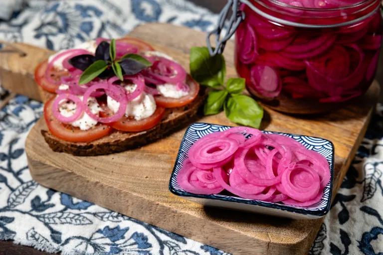 Eingelegte rote Zwiebeln sind nicht nur ein farblicher Hingucker auf dem Teller, sondern bringen auch einen süß-säuerlichen Crunch in deine Gerichte. Egal ob auf einem veganen Burger, in deiner Bowl oder als Beilage zu mexikanischen Tacos – dieses einfache Grundrezept gehört in jede pflanzenbasierte Küche.